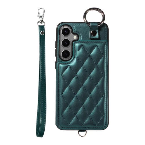 Estuche para Teléfono Samsung Galaxy S24 + 5G con Bolsa para Tarjeta Textura Rómbica y Cordón Corto (Verde)