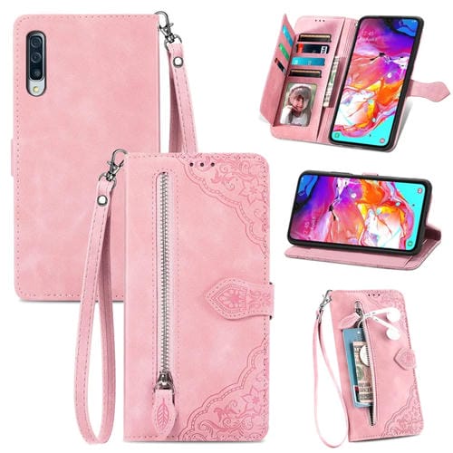 Funda para Samsung Galaxy S24 Ultra 5G Cuero con Cremallera y Flores en Relieve (Rosa)