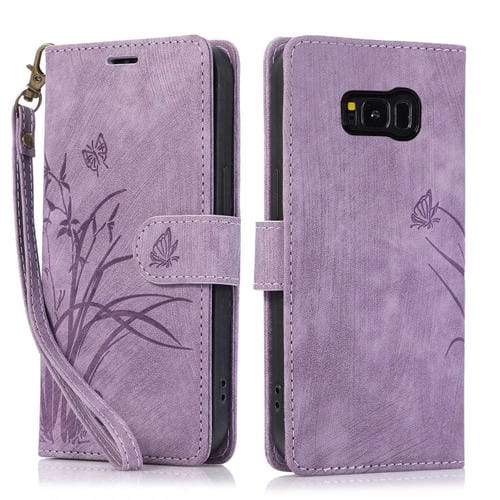 Funda para Teléfono Samsung Galaxy S8 Cuero con Relieve Mariposa Orquídea (Púrpura)