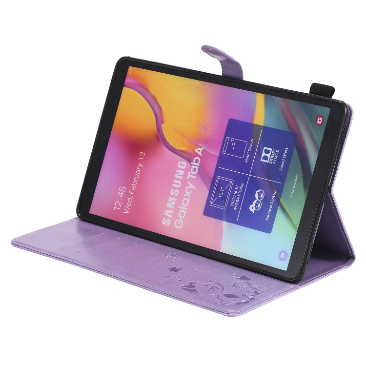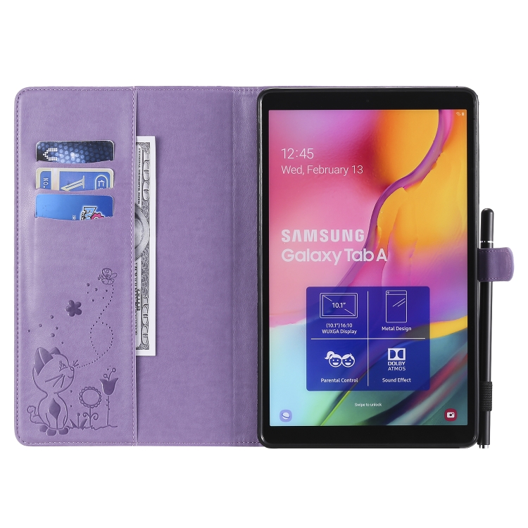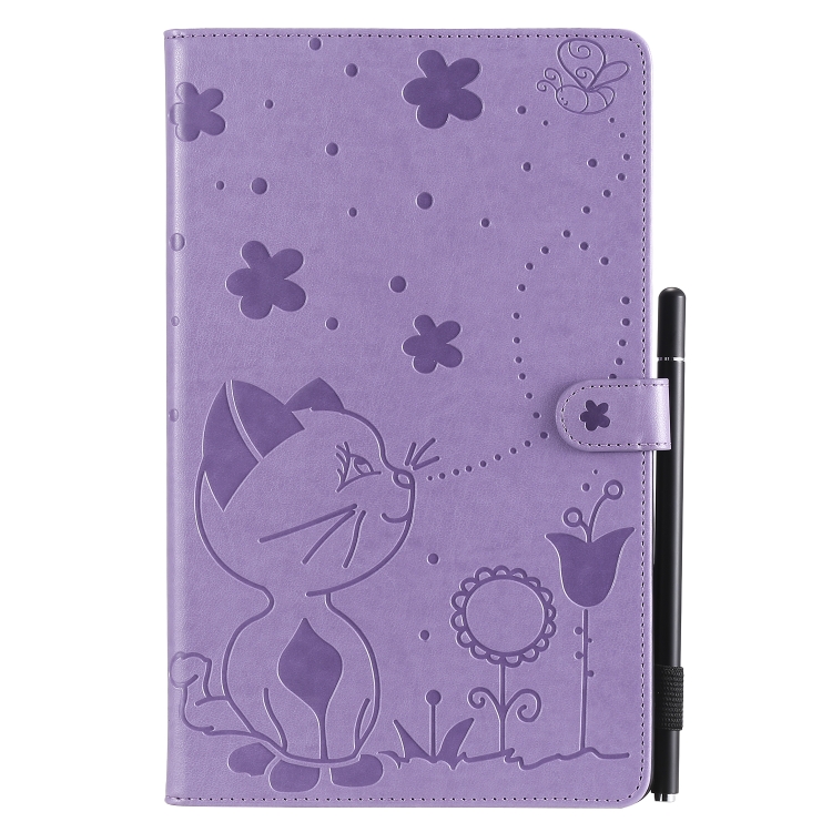 Funda protectora para tablet Samsung Galaxy Tab A9.7 T550 Cat Bee patrón relieve mesa a prueba de golpes con tapa horizontal soporte ranuras tarjetas billetera bolígrafo función despertador (Púrpura)
