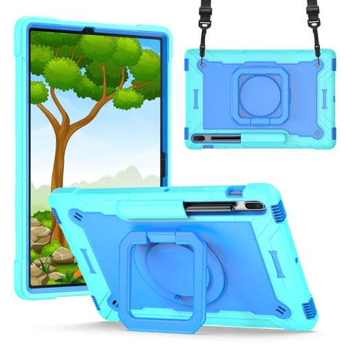 Funda Tablet Samsung Galaxy Tab S7+ S8+ S7 FE Silicone PC Bracelet Holder (Verde Menta + Azul)