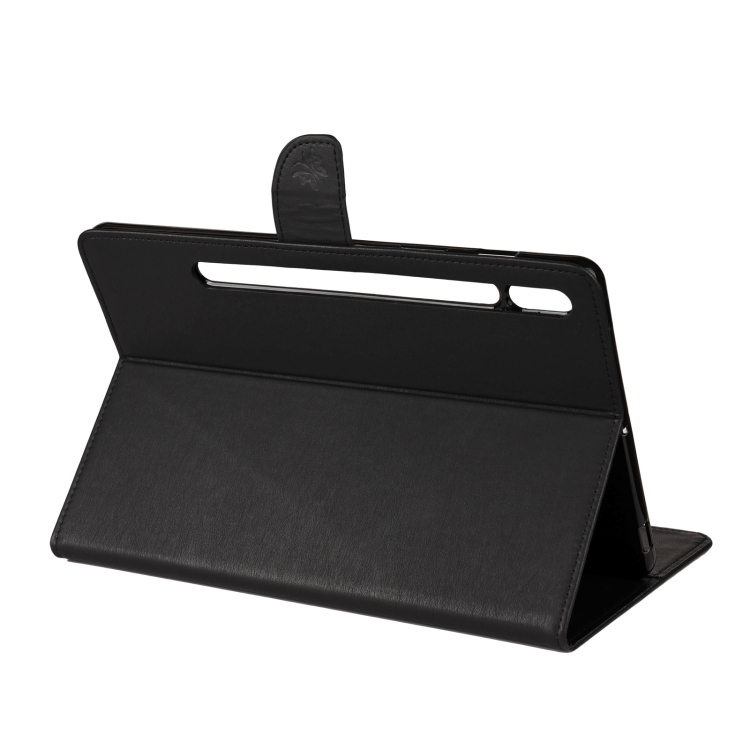 Funda de Cuero para Samsung Galaxy Tab S8 y Tab S7 T870 T875 con Soporte y Ranuras para Tarjetas (Negro)