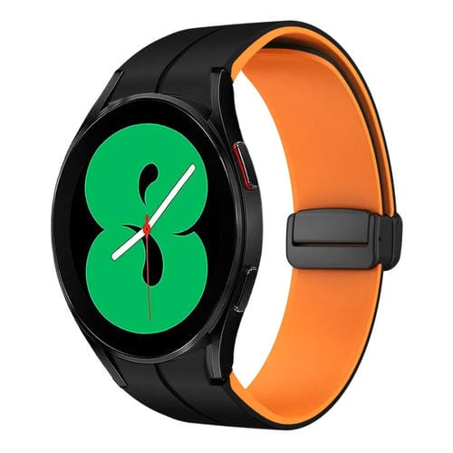 Correa de Silicona para Samsung Galaxy Watch 4 44mm con Hebilla Plegable Magnética Dos Colores (Negro + Naranja)
