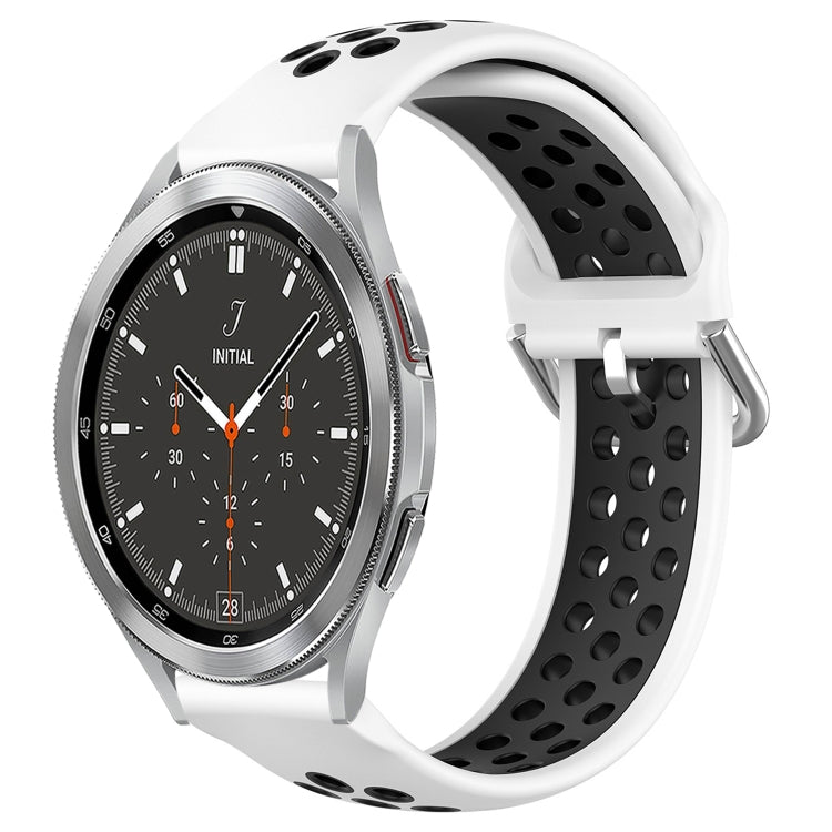 Banda de Reloj para Samsung Galaxy Watch 4 Classic 46mm 20mm silicona deportiva transpirable perforada (Blanco + Negro)