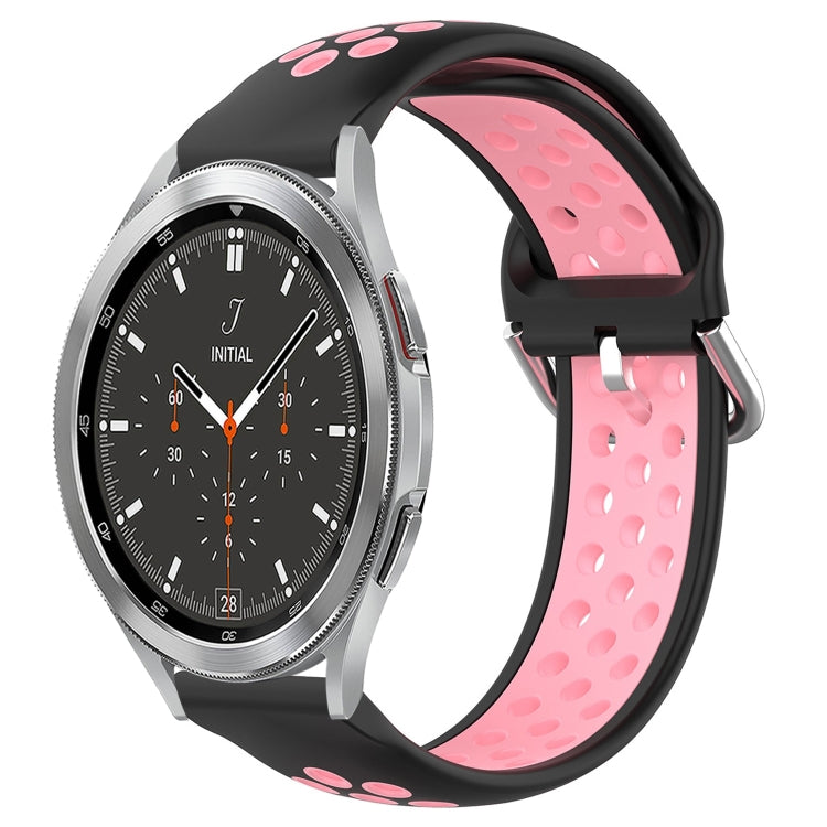 Banda de Reloj para Samsung Galaxy Watch 4 Classic 46mm 20mm Silicona Deportiva Transpirable Perforada (Negro + Rosa)