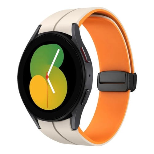 Correa de Silicona para Samsung Galaxy Watch 5 44mm con Hebilla Plegable Magnética (Starlight + Naranja)