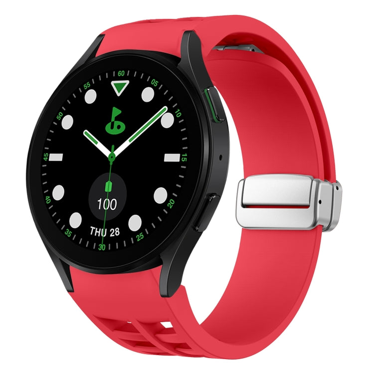 Correa de Reloj Silicona para Samsung Galaxy Watch 5 Golf Edition con Hebilla Plegable Magnética (Rojo)
