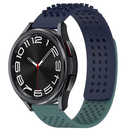Correa de Silicona para Samsung Galaxy Watch 6 Classic 43mm 20mm Agujeros Transpirable Puntos 3D (Azul Medianoche + Verde Oliva)