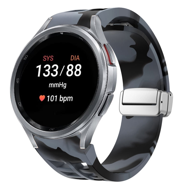 Correa de Silicona para Samsung Galaxy Watch 7 40/44mm Richard con Hebilla Plateada Plegable Magnética (Camuflaje Gris Negro)