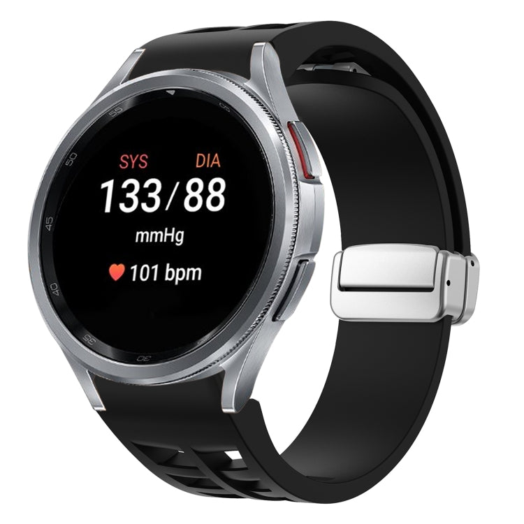 Correa de Silicona para Samsung Galaxy Watch 7 40/44mm con Hebilla Plateada Plegable Magnética (Negro)