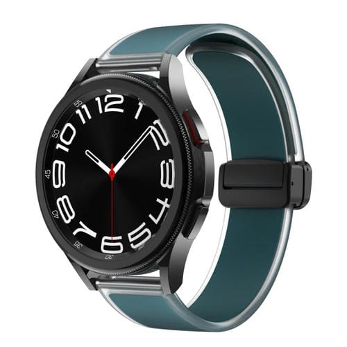 Correa de Silicona para Samsung Galaxy Watch6/5/4 con Hebilla Magnética Negra Translúcida (Verde Oscuro)