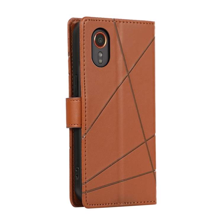 Funda para Teléfono Samsung Galaxy Xcover 7 PU con Línea En Relieve y Textura de Cuero Genuino (Marrón)