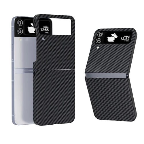 Funda Protectora Samsung Galaxy Z Flip4 Textura Fibra de Carbono con Calcomanía (Negro)