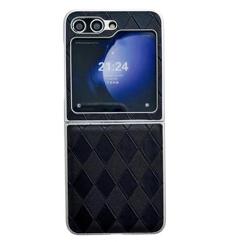 Funda para Teléfono Samsung Galaxy Z Flip5 5G Cuero a Cuadros con Pintura Nacarada y Forma de Diamante (Negro)