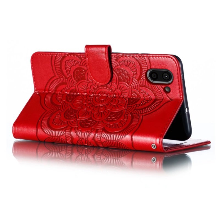 Funda de Cuero para Sharp Aquos R2 con Patrón en Relieve (Rojo)