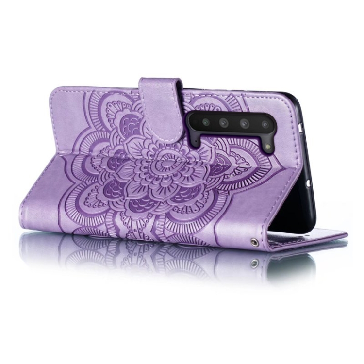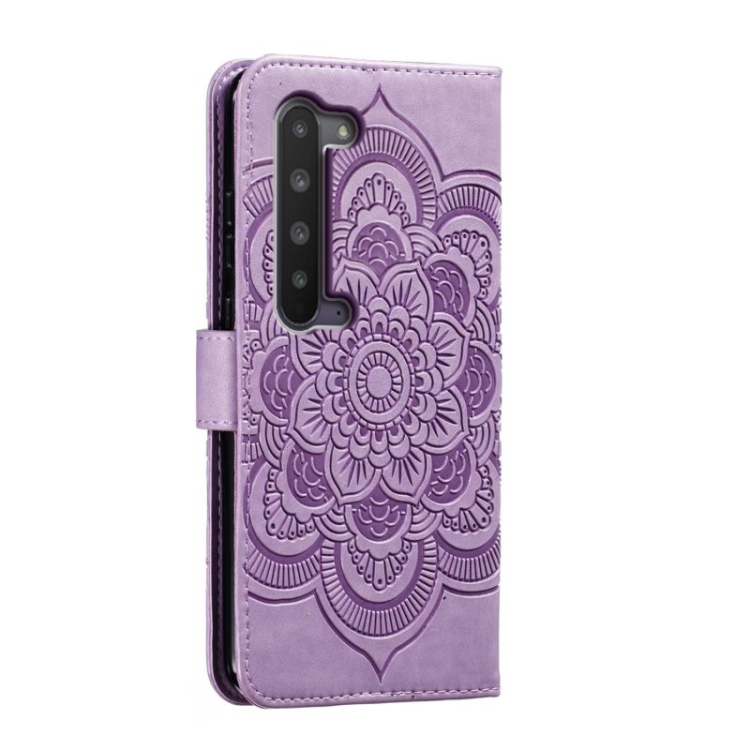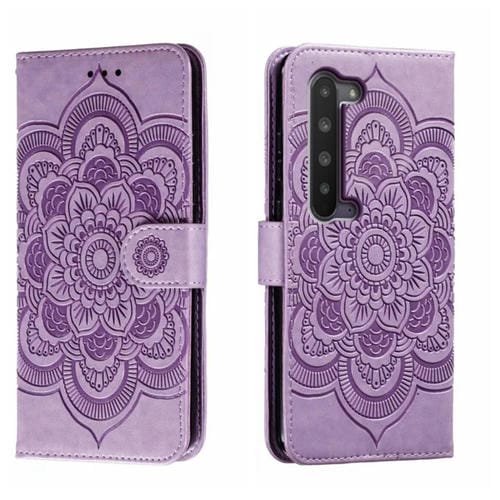 Funda de Cuero para Sharp Aquos R5G con Patrón Sun Mandala en Relieve (Púrpura)