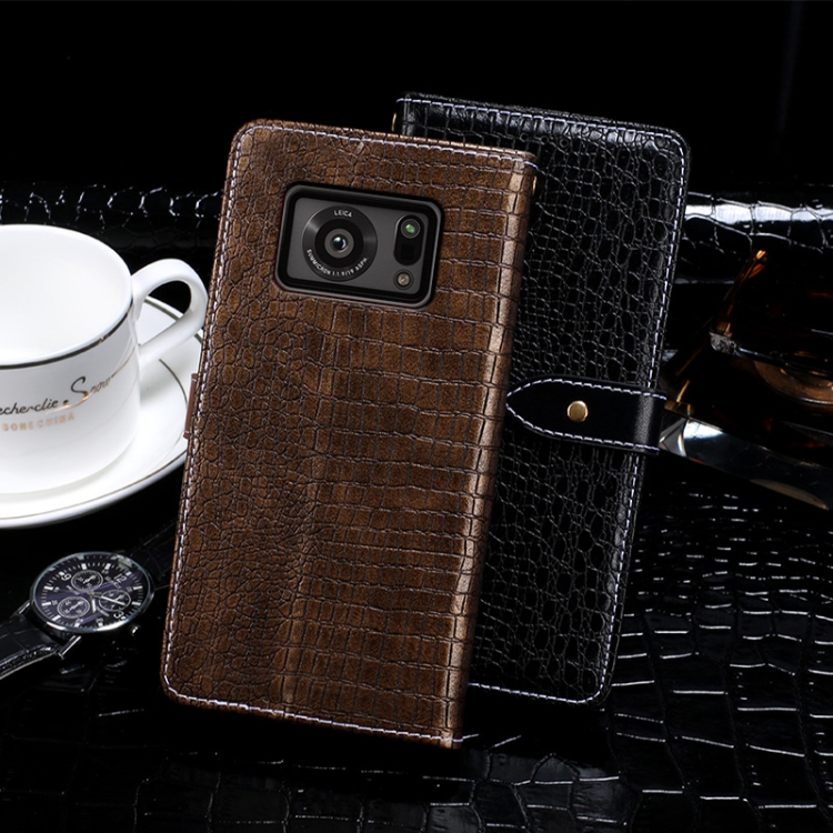Funda de Cuero Idewei Cocodrilo para Sharp Aquos R6 con Soporte, Tragamonedas y Billetera (Negro)