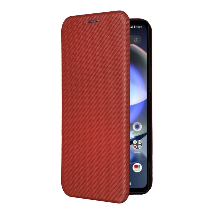Funda de Teléfono para Sharp Aquos R8 Cuero con Textura de Fibra de Carbono (Marrón)