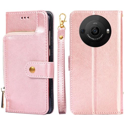 Funda de Cuero con Cremallera para Sharp Aquos R8 Pro Sh-51D (Oro Rosa)
