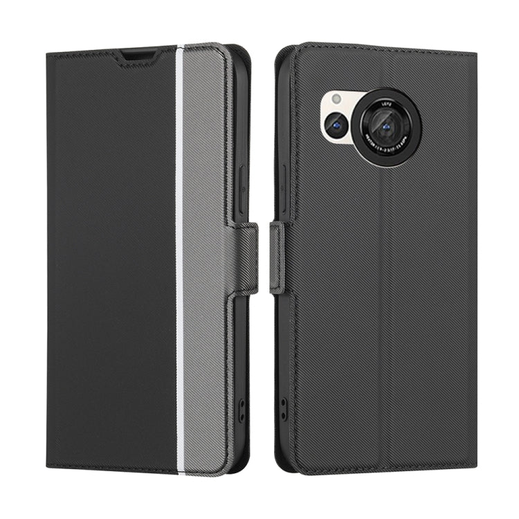 Funda de Cuero para Sharp Aquos R8 Sh-52D con Textura de Sarga y Botón Lateral (Negro)
