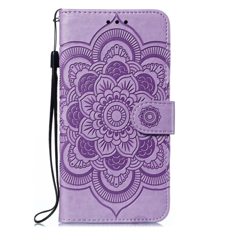 Funda de Cuero para Sharp Aquos Sense2 con Patrón Sun Mandala en Relieve (Púrpura)