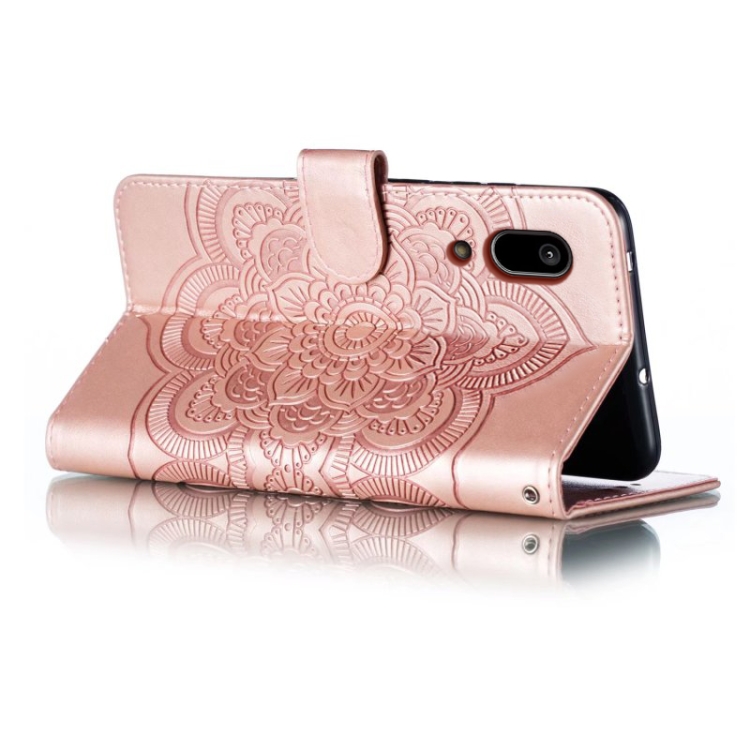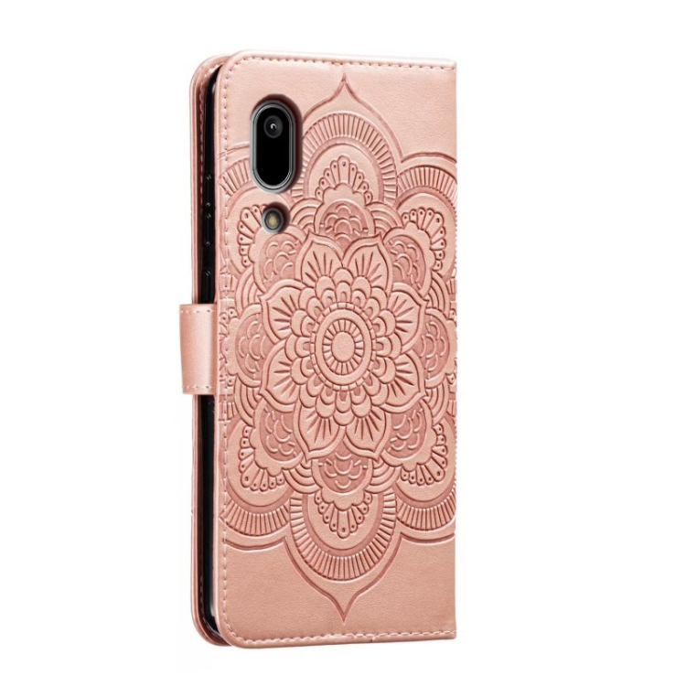 Funda de Cuero para Sharp Aquos Sense3 con Patrón En Relieve Sun Mandala (Oro Rosa)