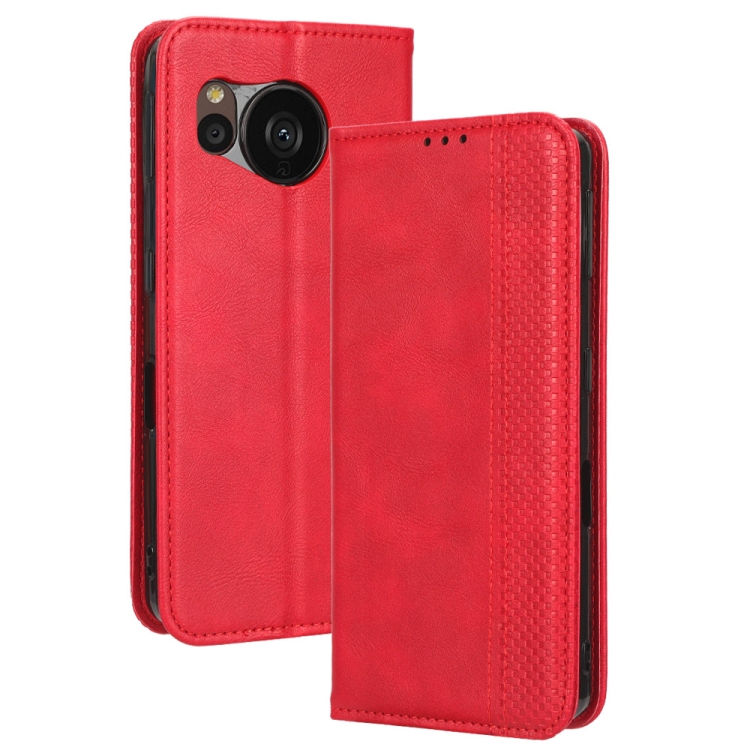 Funda de Cuero para Sharp Aquos Sense7 con Hebilla Magnética y Textura Retro (Rojo)