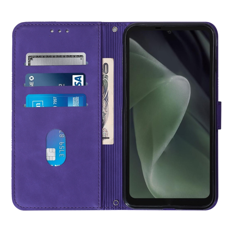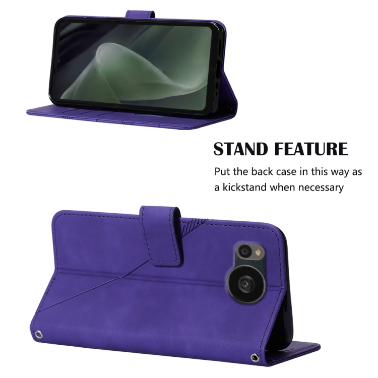 Funda de Cuero para Sharp Aquos Sense7 Plus Crossbody 3D con Tapa En Relieve (Púrpura)