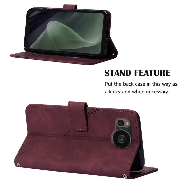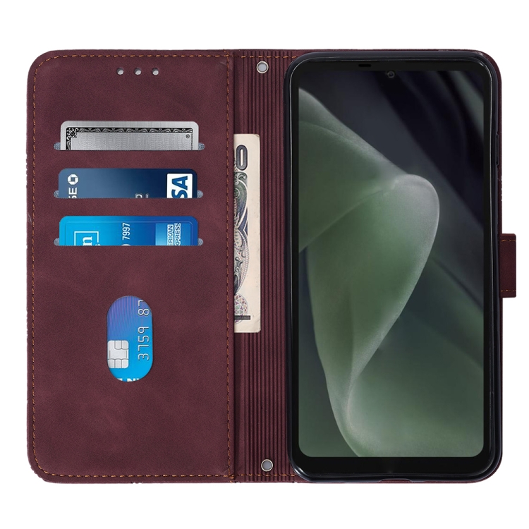 Funda de Cuero para Sharp Aquos Sense7 Plus Crossbody 3D con Tapa en Relieve (Rojo Vino)