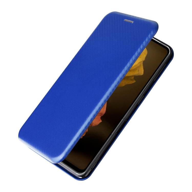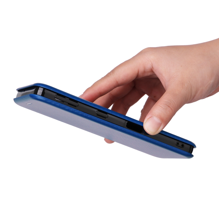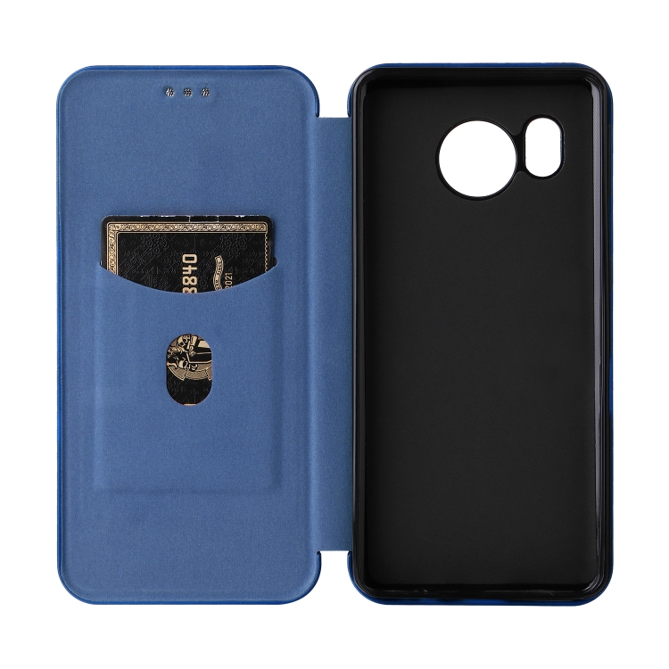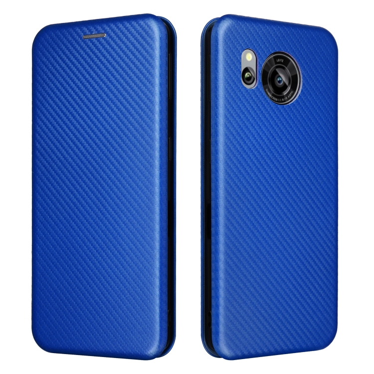 Funda de Cuero para Sharp Aquos Sense7 Plus con Textura de Fibra de Carbono (Azul)
