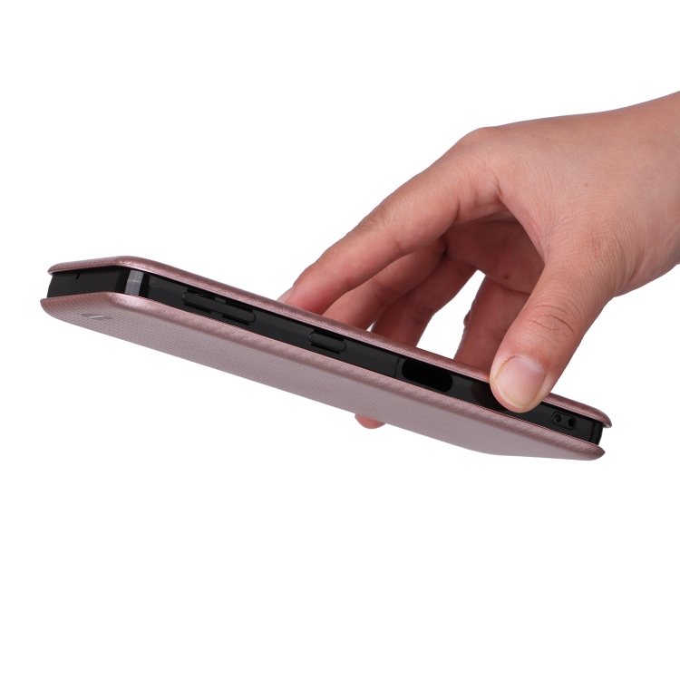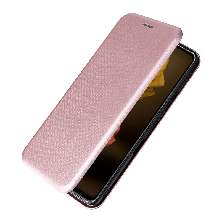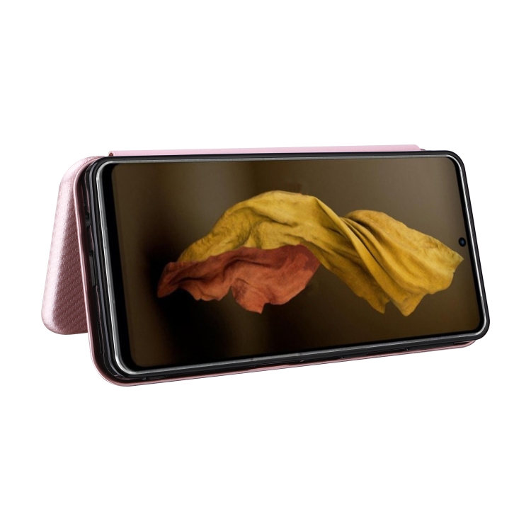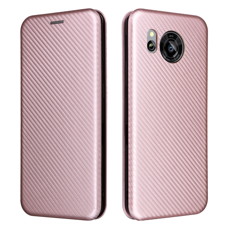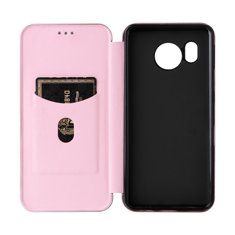 Funda de Cuero para Sharp Aquos Sense7 Plus con Textura de Fibra de Carbono (Rosa)