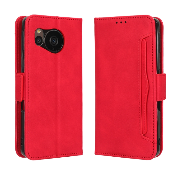 Funda de Cuero para Sharp Aquos Sense7 Plus con Textura Becerro y Ranuras para Tarjetas (Rojo)