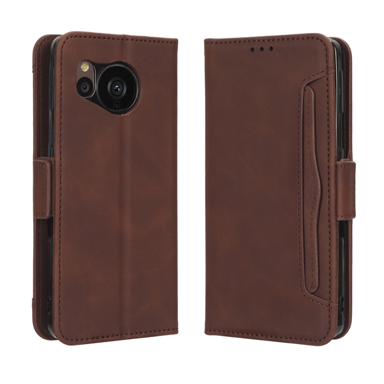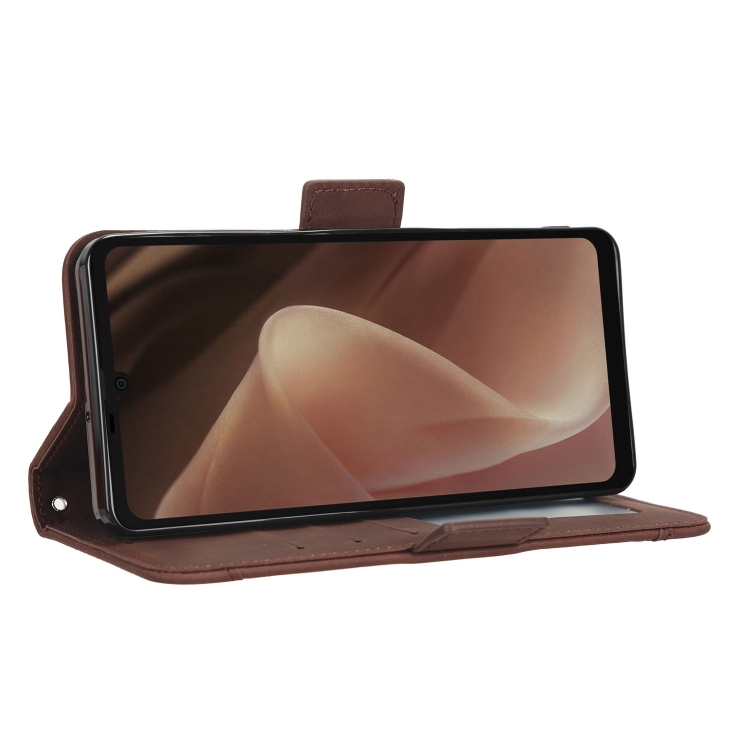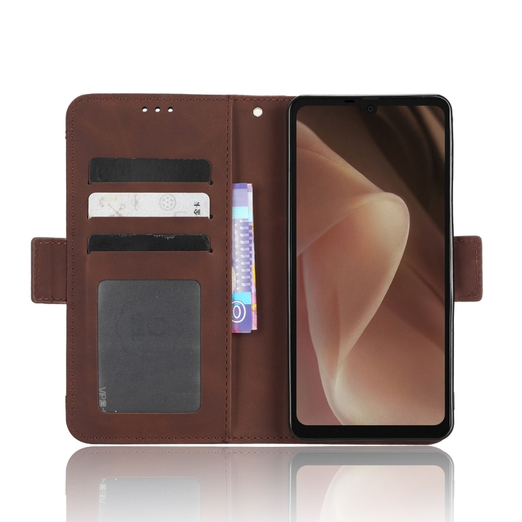 Funda de Cuero para Sharp Aquos Sense7 con Ranuras para Tarjetas Skin Feel (Marrón)