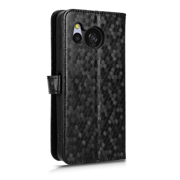 Funda de Cuero para Sharp Aquos Sense8 con Textura de Punto de Panal (Negro)