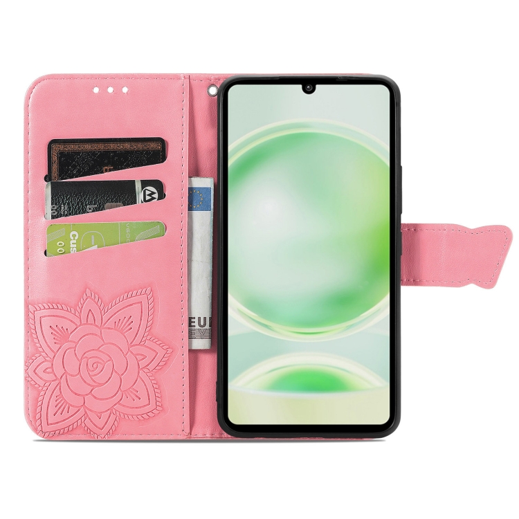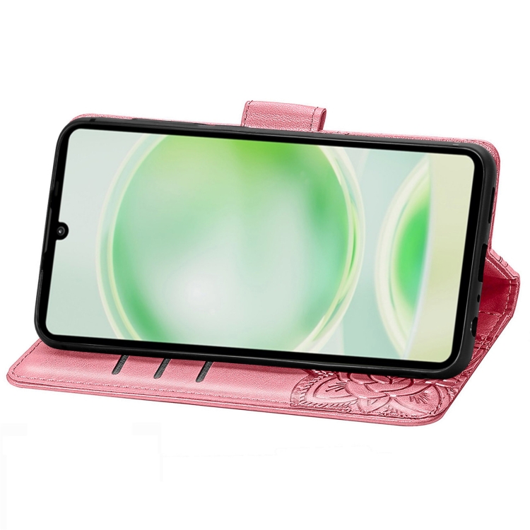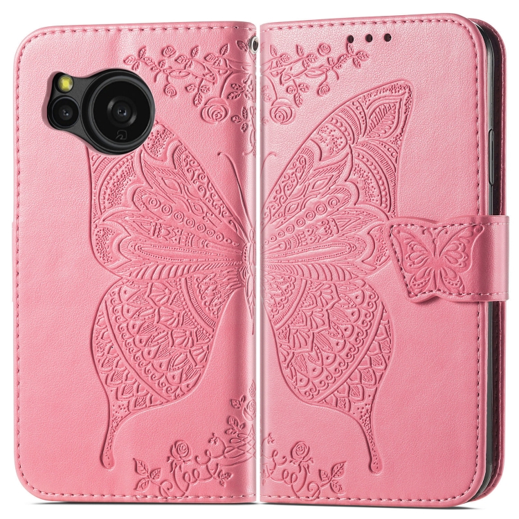 Funda para Sharp Aquos Sense8 de Cuero con Relieve de Flor y Mariposa (Rosa)