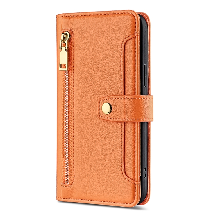 Funda de Cuero para Sharp Aquos Sense8 Lite con Billetera, Cremallera y Textura de Oveja (Naranja)