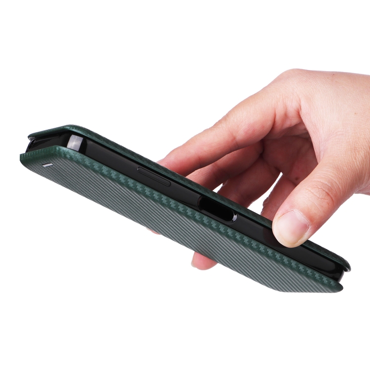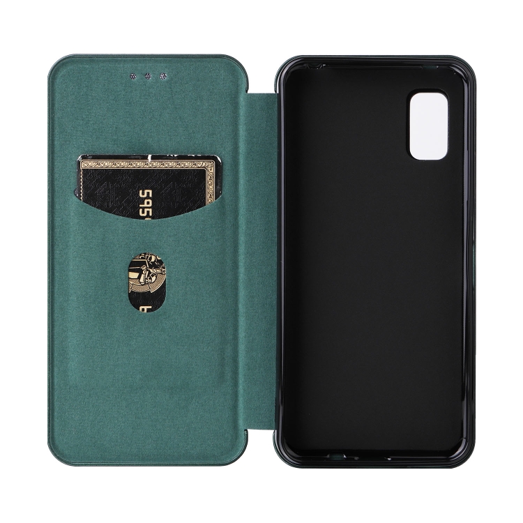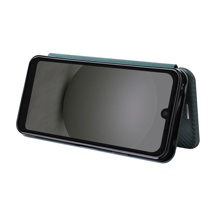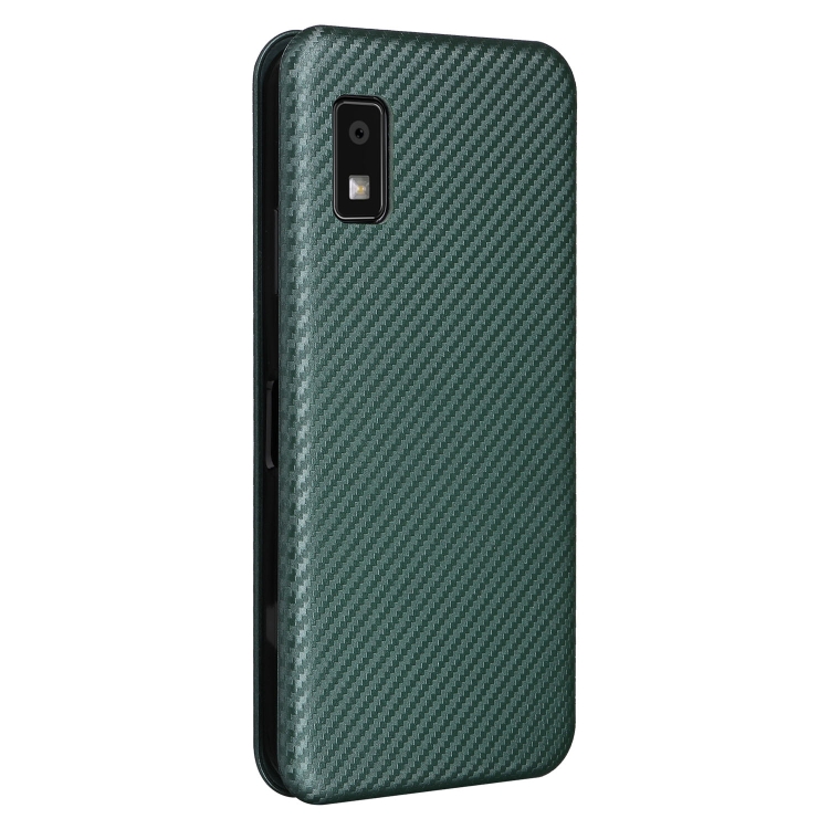 Funda de Cuero para Sharp Aquos Wish 3 con Tapa de Fibra de Carbono (Verde)