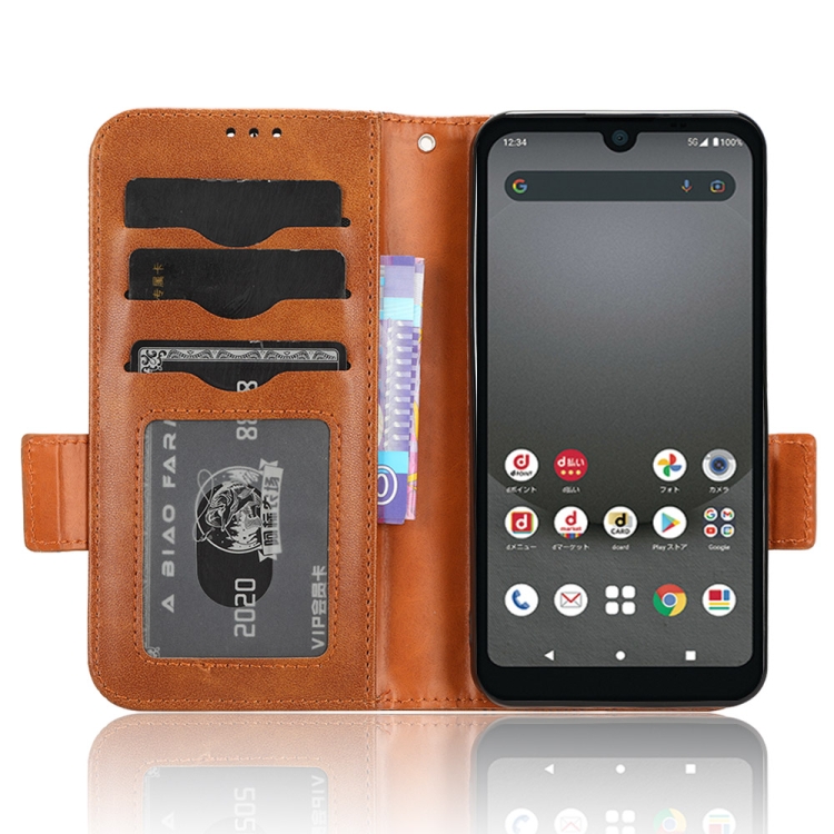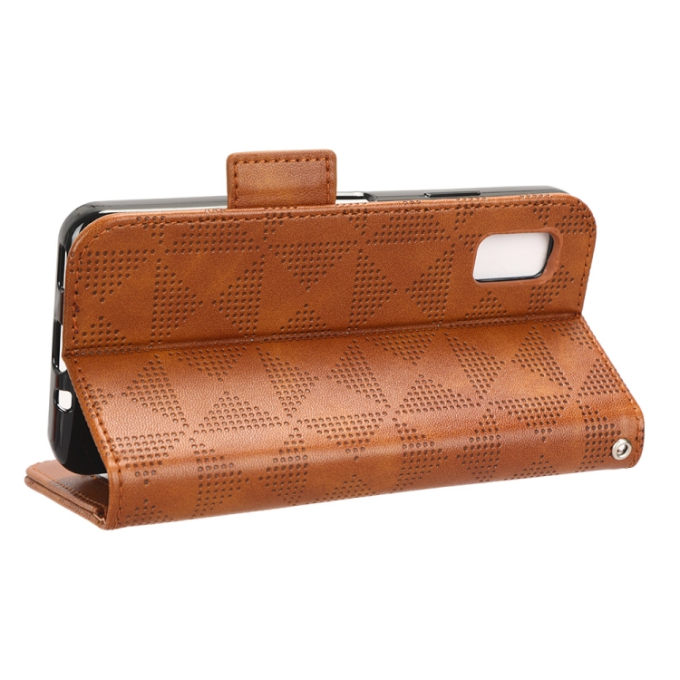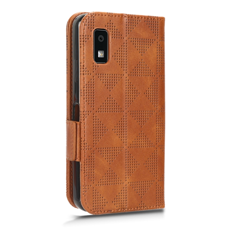 Funda de Cuero para Sharp Aquos Wish 3 con Patrón Triángulo Simétrico (Marrón)