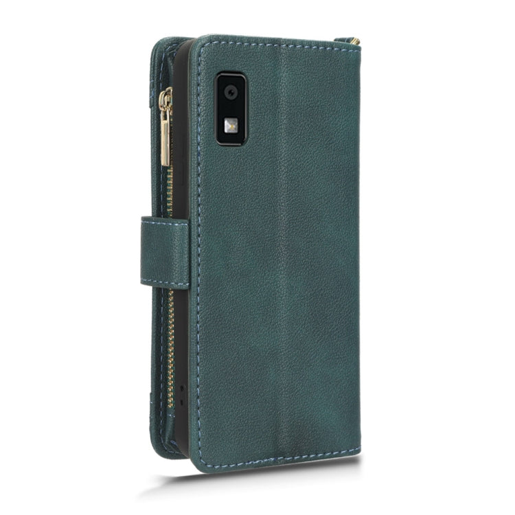 Funda de Cuero para Sharp Aquos Wish 3 con Textura Litchi y Cremallera (Verde)
