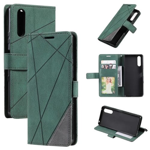 Funda de Cuero para Sony Xperia 1 V Skin Feel Splicing (Verde)
