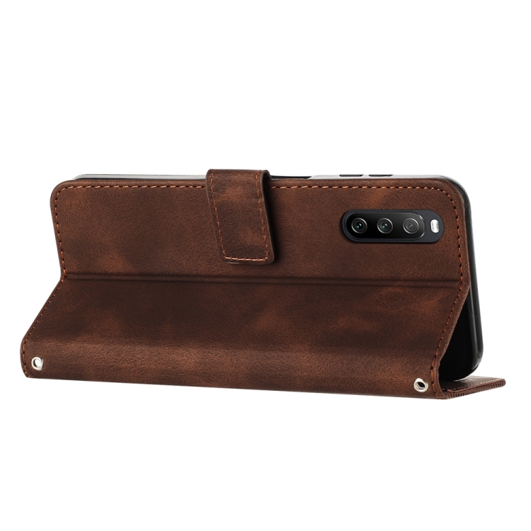Funda de Cuero para Sony Xperia 10 IV Dream Triangle con Cordón (Marrón)