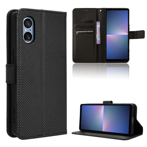 Funda de Cuero para Sony Xperia 5 V (2023) con Textura de Diamante (Negro)