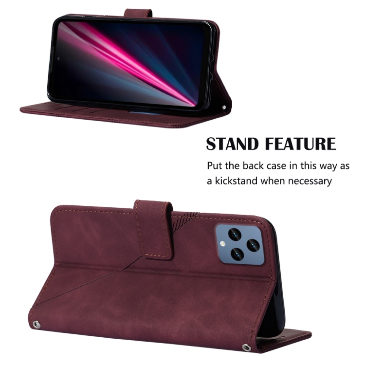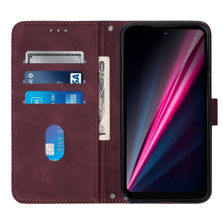 Funda de Cuero para T-Mobile Revvl 6 5G Crossbody 3D con Tapa En Relieve (Rojo Vino)