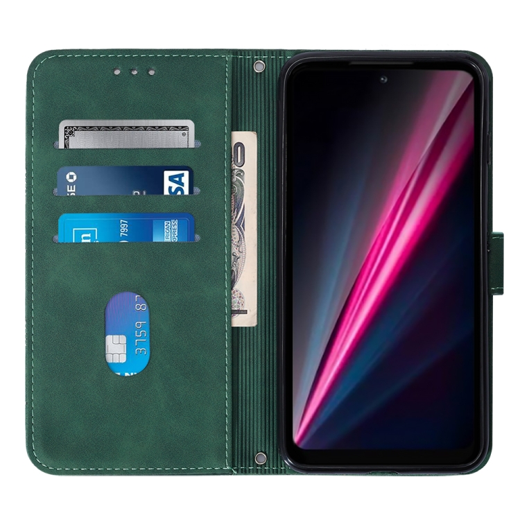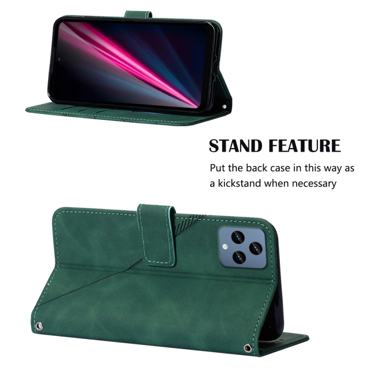 Funda de Cuero para T-Mobile Revvl 6 5G Crossbody con Tapa En Relieve (Verde Oscuro)