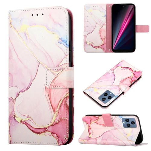 Estuche de Cuero para T-Mobile Revvl 6 5G Pt003 con Tapa de Patrón Mármol (Oro Rosa)