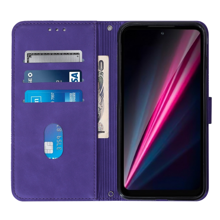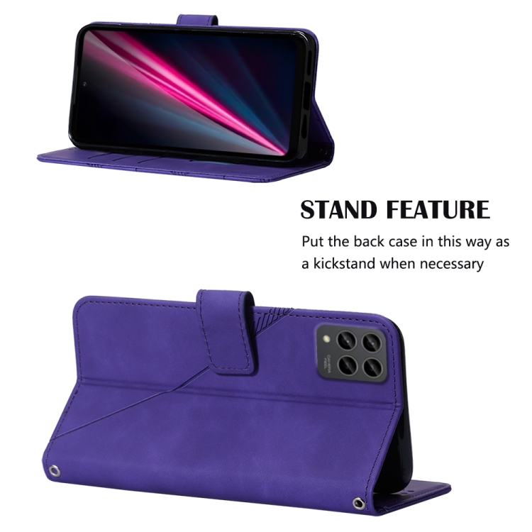 Funda de Cuero para T-Mobile Revvl 6 Pro 5G Crossbody con Tapa en Relieve (Púrpura)