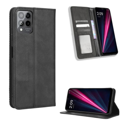 Funda de Cuero para T-Mobile Revvl 6 Pro 5G con Hebilla Magnética y Textura Retro (Negro)