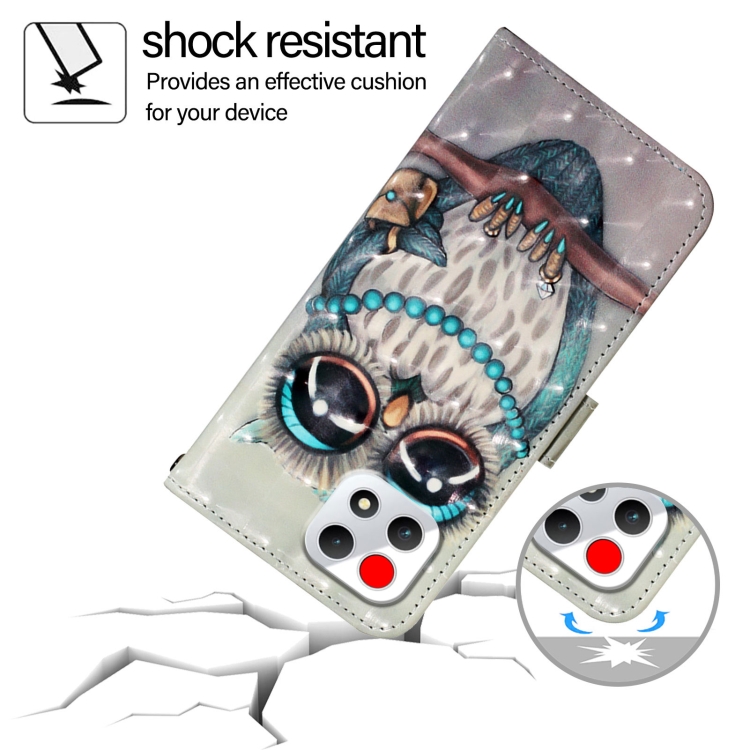 Funda para Teléfono T-Mobile Revvl 7 Cuero con Tapa Horizontal y Pintura 3D (Búho Gris)