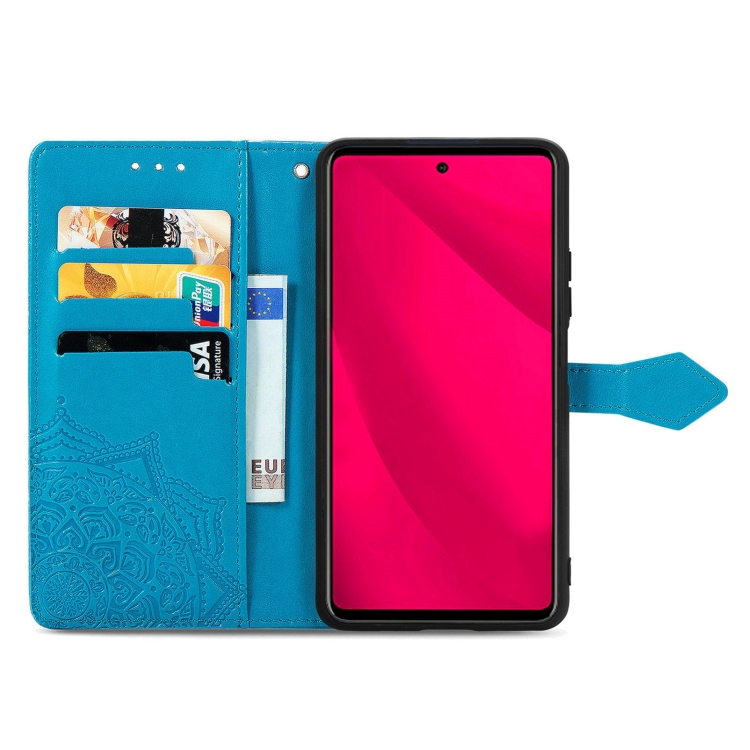 Funda para Teléfono T-Mobile Revvl 7 Pro 5G Cuero con Relieve de Flor de Mandala (Azul)