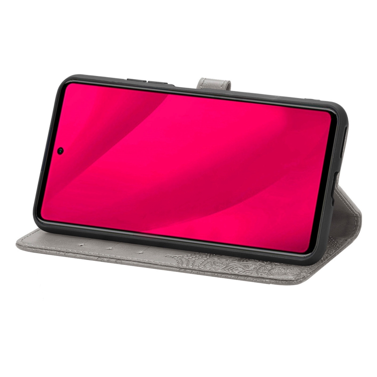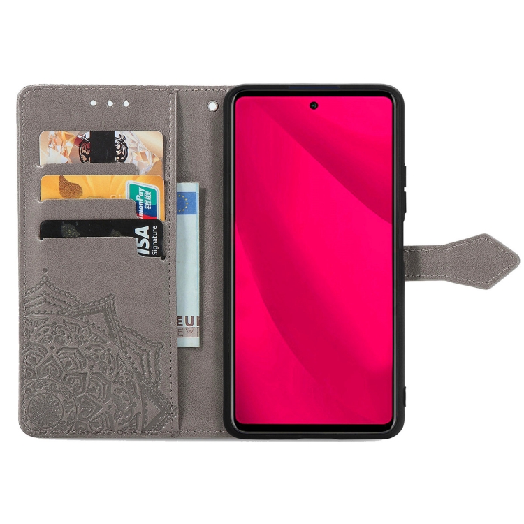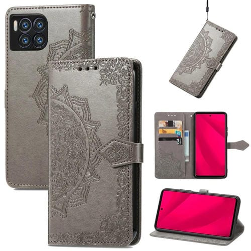 Funda para Teléfono T-Mobile Revvl 7 Pro 5G Cuero con Relieve Flor de Mandala (Gris)